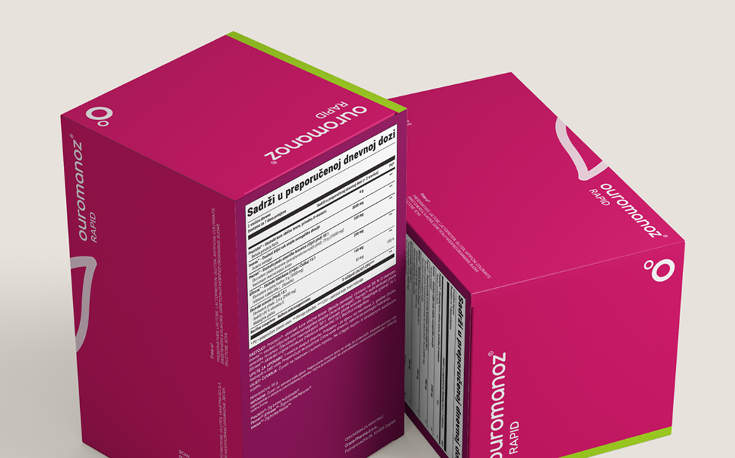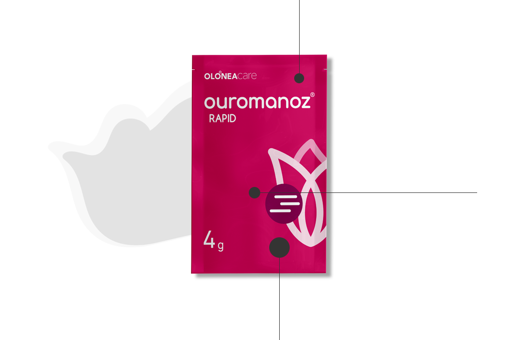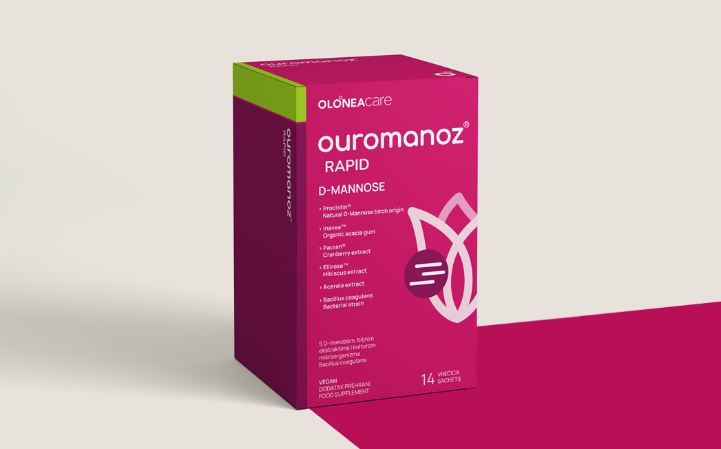 ouromanoz® RAPIDPrirodna D-manoza iz breze, brusnica PACRAN®, Ellirose hibiskus, kulture mikroorganizama, prehrambena vlakna i vitamin C iz acerole – formulacija za intenzivnu podršku urinarnom traktu.